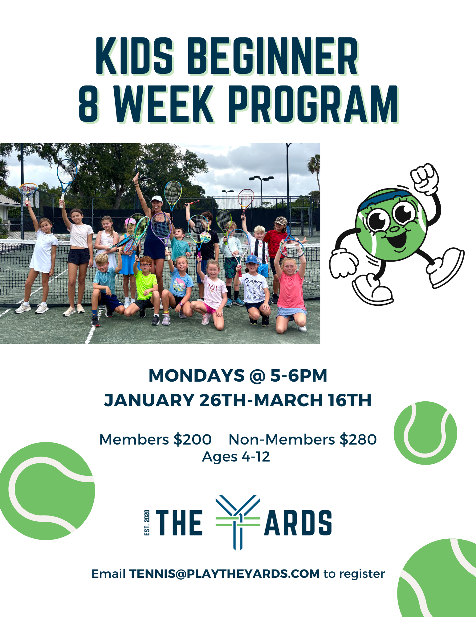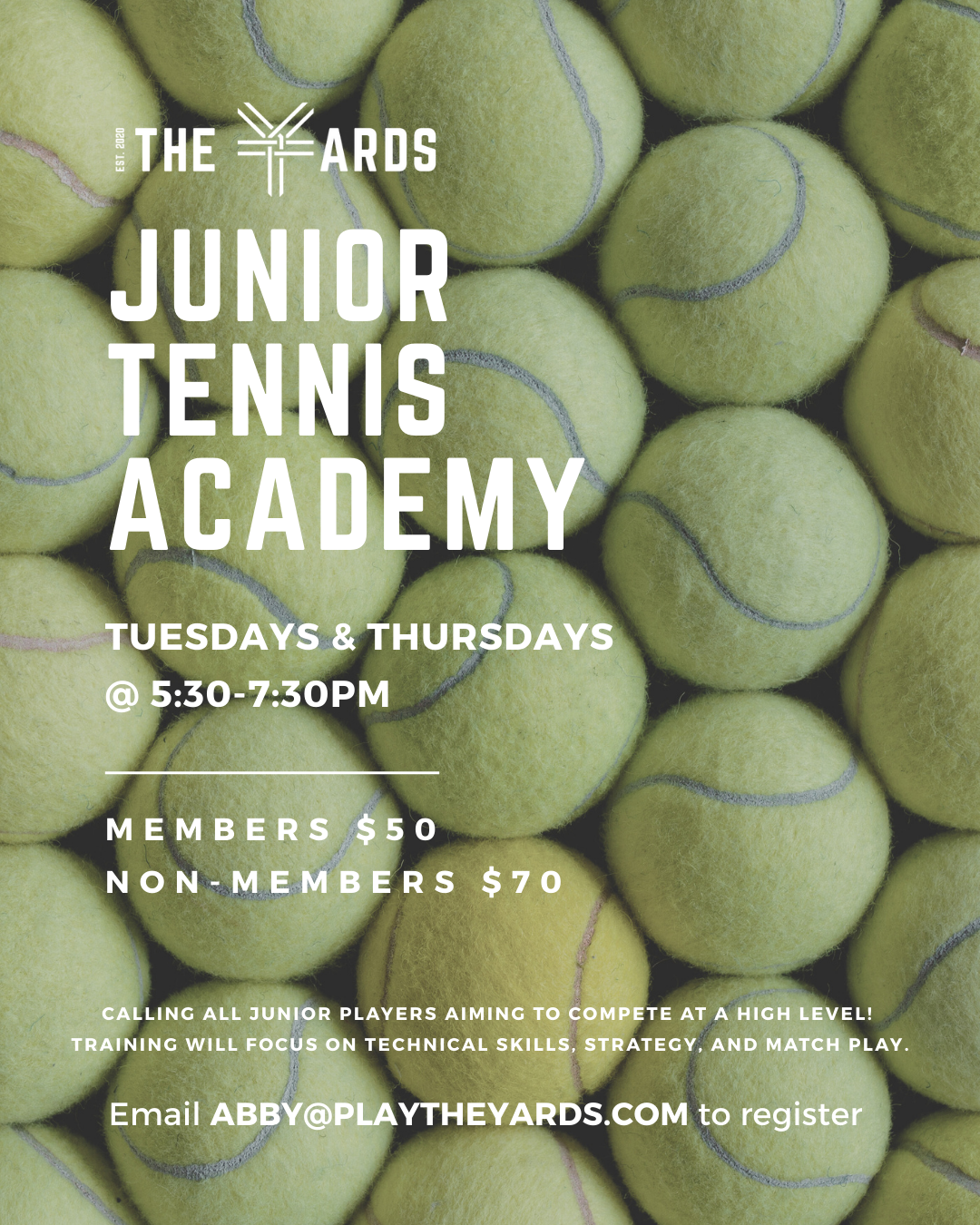 Call the Tennis Pro Shop at (904)395-2103 or email tennis@playtheyards.com to register today!